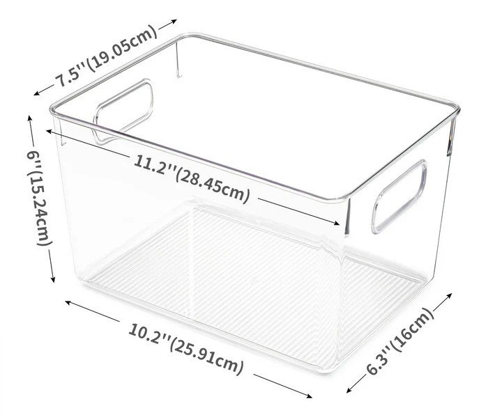 Functional and Versatile —- With the perfect size, these plastic storage bins are great for cabinets and deep pantry shelves as well as inside the fridge or freezer. You can use them in any room of the home, such as in craft rooms, laundry rooms, bedrooms, bathrooms, kitchens, offices, garages, toy room, playroom and more.