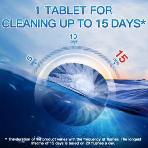 LONG-LASTING EFFECT: With the sustained-release technology, each splash toilet cleaner can continuously clean the toilet for up to 15 days with 20 flushes a day. With 20 packs for replacement, toilet cleaner tablets can keep the toilet bowl clean and fresh for over 10 months. Additionally, the lifetime of each toilet tablet may vary with the frequency of flushes.